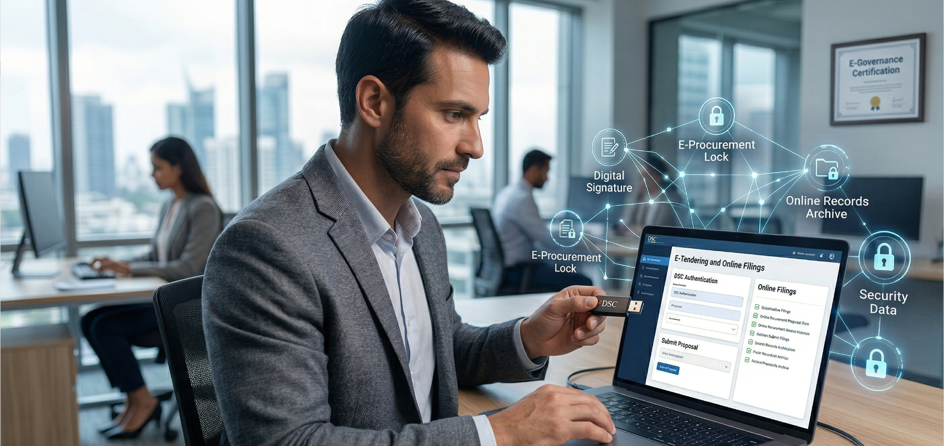 Digital Signature Certificate (DSC), E-Tendering, E-Procurement, Online Filings.